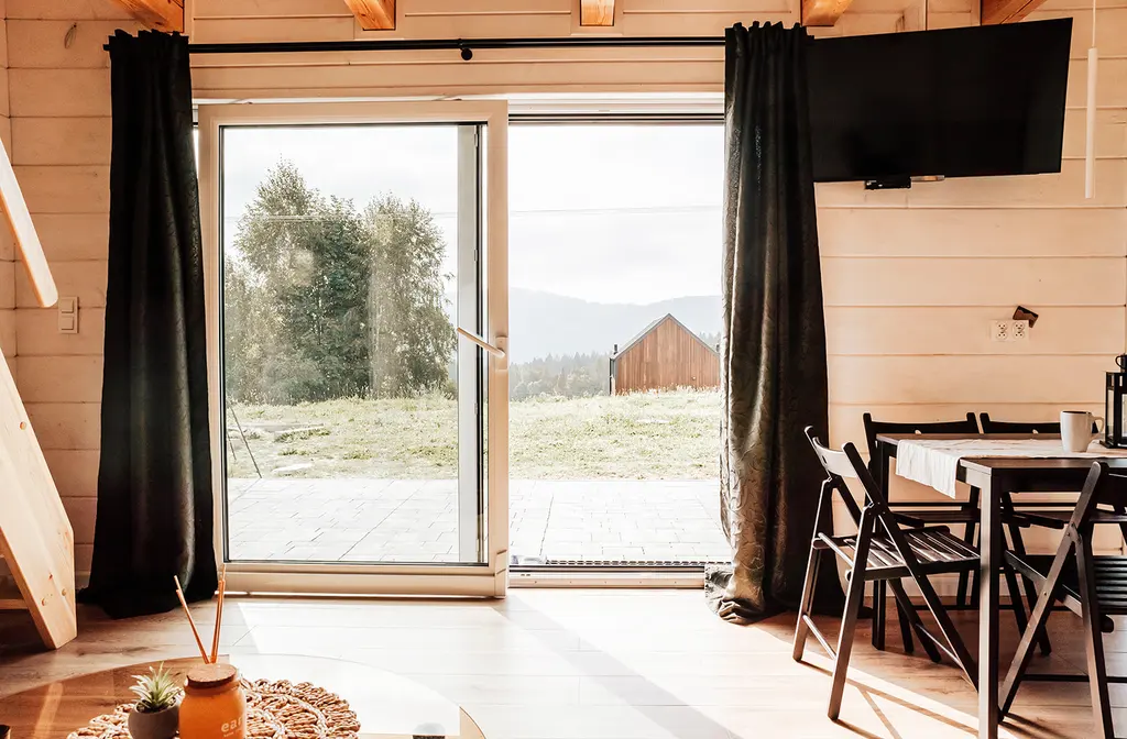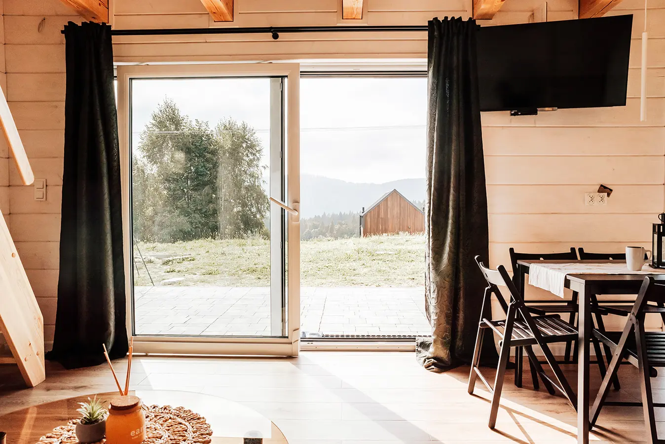 - duży salon połączony z jadalnią (sofa rozkładana dwuosobowa, TV, wyjście na taras)