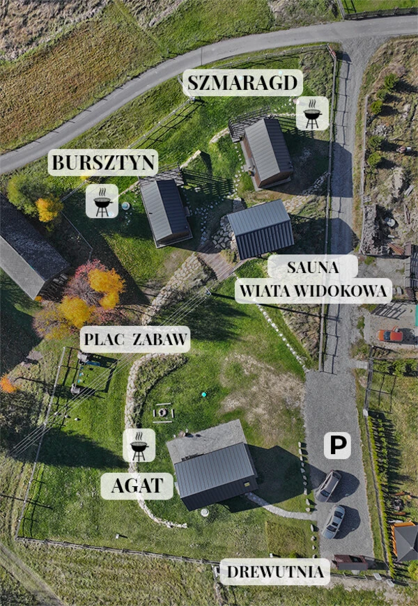 - zestaw powitalny (kawa, herbata, cukier), pościel, ręczniki, prąd, woda, Wi-Fi, parking, palenisko grillowe z drewnem, sprzątanie końcowe