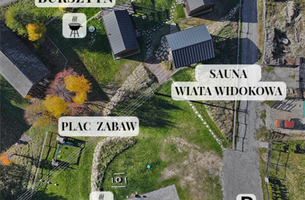 W cenie oddzielny obiekt współdzielony (przyziemie - sauna sucha, piętro - wiata widokowa) oraz plac zabaw