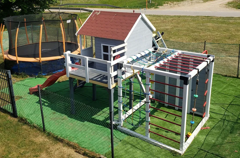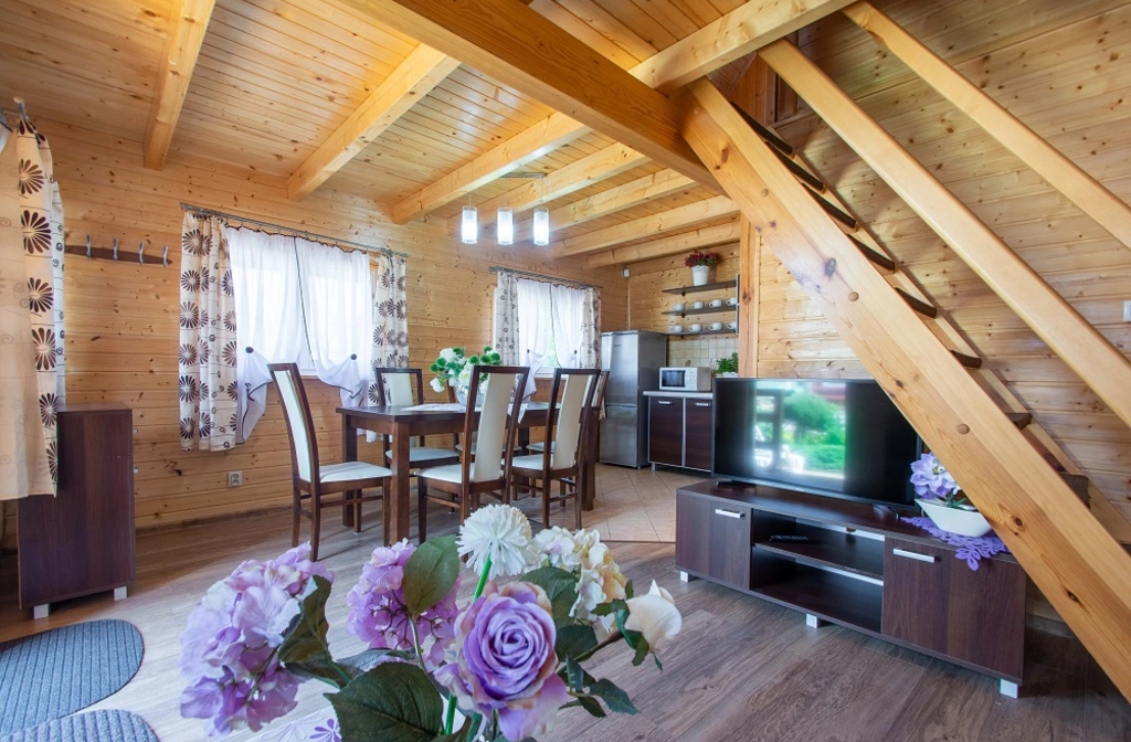 Zapraszamy Panstwa do naszych nowoczesnych domkow drewnianych blisko morza i centrum Ustki. Domki o pow.60m2 sa wyposazone w wysokim standarcie, posiadaja lozka dla 6 osob,duzy aneks kuchenny w wpelni wyposazony, 2 odzielne zamykane sypialnie , pokoj dzienny, lazienke i taras. Na tarasie znajduja sie meble ogrodowe: stol, 6 krzesel i lezanka. W kazdym z domkow jest do Panstwa dyspozycji sprzet plazowy i gril. Na terenie obiektu znajduje sie parking, duzy plac zabaw , gril oraz bezplatny internet. W poblizu sa liczne sciezki rowerowe , stadnina koni i darmowe boisko sportowe.