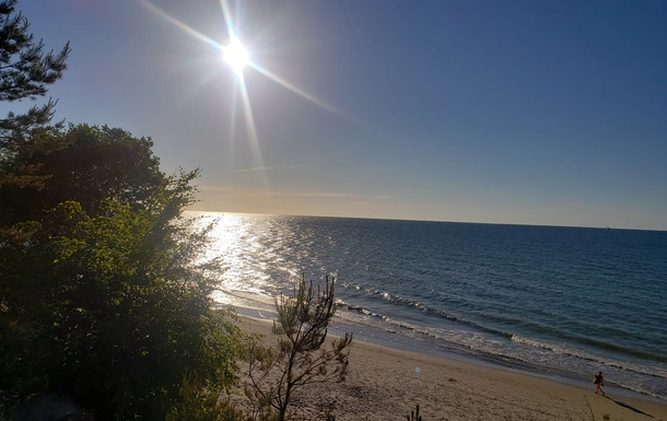 Do plazy okolo 900 metrow alejka przez las.