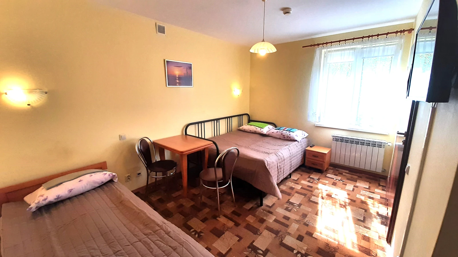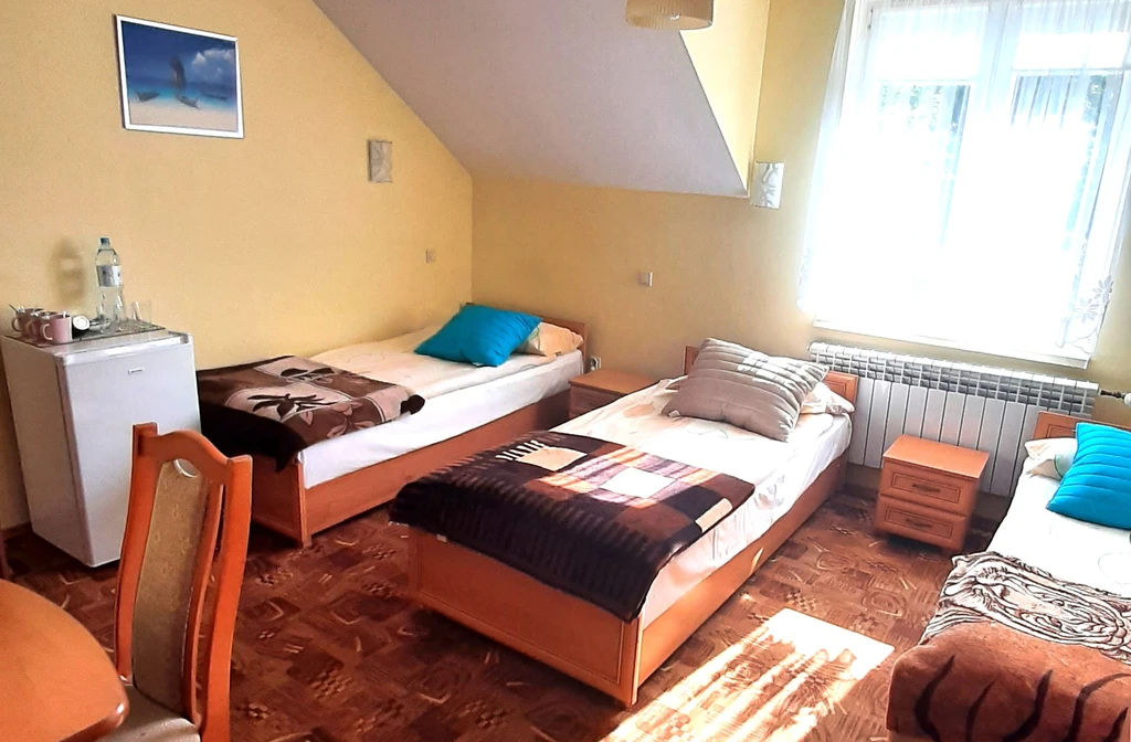CENISZ SPOKÓJ-wygodne 2,3,4osobowe dla niepalących pokoje,w każdym:łazienka,lodówka,czajnik,herbata,WIFI. F-VAT. Ogrodzony parking GRATIS:auta osobowe,VAN.Na parterze jest ogólny aneks kuchenny, gdzie przygotujesz posiłek.Dobra lokalizacja na płn. Łodzi,w otoczeniu zieleni, bardzo łatwo: jadąc prosto ulicą Zgierską w kilka minut dojedziesz autem do centrum, MANUFAKTURY, ulicy Piotrkowskiej. Dojazd też tramwajem 4,11,19,45, autobusem 89. obiekt jest dobrze skomunikowany z resztą miasta. Do sklepu spożywczego tylko 250metrów,do LIDL 600m. Blisko też jest: kryty basen, dziecięcy park rozrywki, centrum sportu. Do ORIENTARIUM ZOO, Aquaparku Fala, Atlas Areny, Ogrodu Botanicznego dojazd Aleją Włókniarzy w kilka minut autem lub koleją ŁKA. Do autostrad A1,A2:węzeł Emilia lub Stryków oraz S14 łatwo dotrzesz w 10 minut. W pobliżu też: duże markety Castorama,Leroy Merlin.