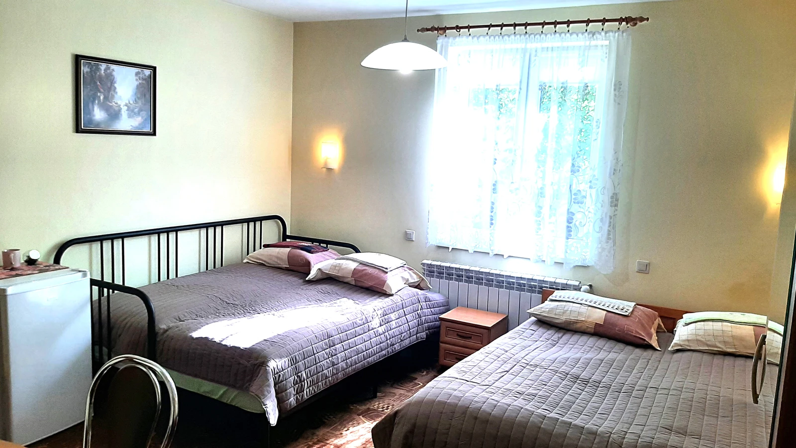 Zadbane pokoje ,w każdym jest m.in. łazienka, lodówka, czajnik, wifi.