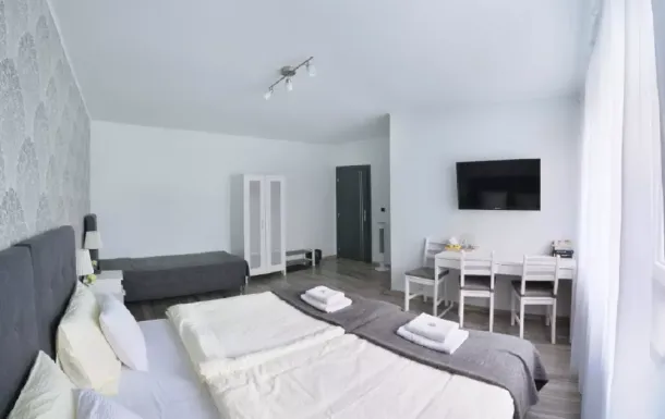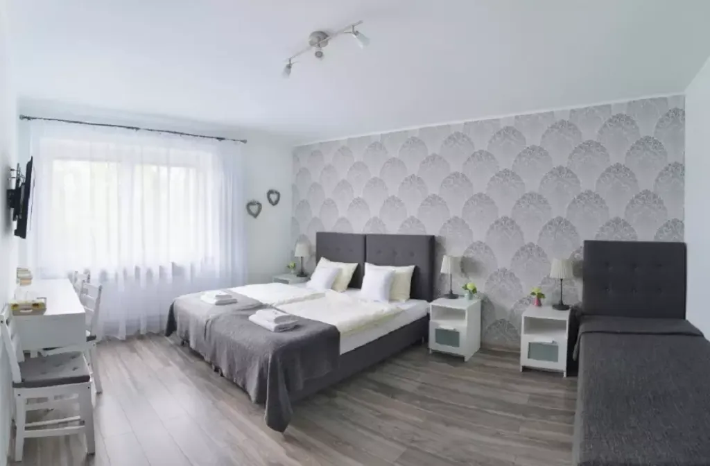 Do Państwa dyspozycji czekają pokoje 2,3,4 osobowe, każdy pokój jest wyposażony w TV i łazienkę z prysznicem, suszarka do włosów, kosmetyki i ręczniki. W całym obiekcie jest dostępne WiFi dla gości oraz w pełni wyposażona kuchnia.