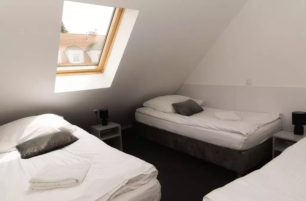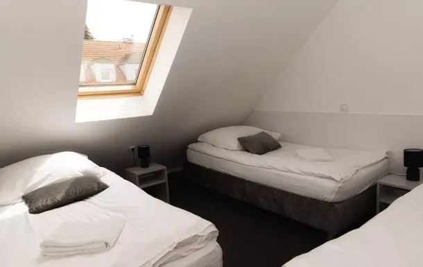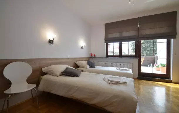 Pokój wyposażony w łóżko podwójne z możliwością dowolnej konfiguracji np dwa łóżka pojedyncze,(dostępny również dla jednej osoby) a także w TV i WIFI z dostępem do wyposażonej kuchni oraz pralki.