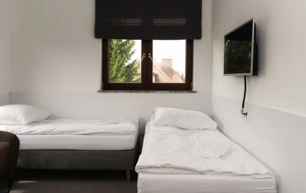 W Spokojnej pełnej zieleni dzielnicy Blisko centrum. Standard pokoju bardzo wysoki jasny, przytulny z własną łazienką . Wyposażona łazienka w suszarkę do włosów ,ręczniki, kabina prysznicowa , lustro,umywalka i toaleta.Pokój wyposażony w łóżko podwójne z możliwością dowolnej konfiguracji np dwa łóżka pojedyńcze,(dostępny również dla jednej osoby) a także w TV i WIFI z dostępem do wyposażonej kuchni oraz pralki. Doskonała komunikacja miejska zapewnia transport do każdego miejsca w Szczecinie a także na dworzec kolejowy i autobusowy linia 75 przystanek w odległości 50 m.