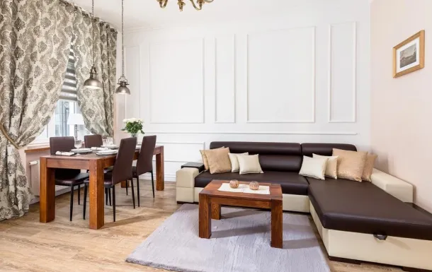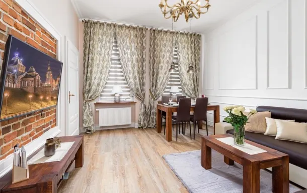 Dawna miejska rezydencja szczecińskiej arystokracji dlatego staraliśmy się aby architektura , łącząca w sobie klasykę 100 letniego budynku z nowoczesnością , wystrój i kolorystyka apartamentu nawiązuje do klimatu rezydencji z przełomu XIX i XX wieku.