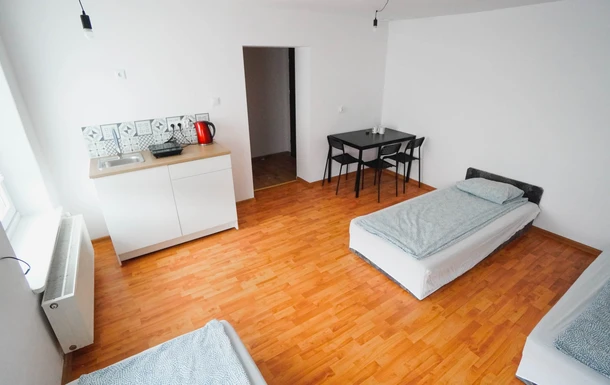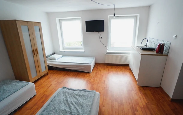 Pokój z łazienką i prywatnym aneksem kuchennym jest kolejny z kolei pokojem o wysokim standardzie w naszej ofercie. Spokoju znajdują się trzy łóżka pojedyncze aneks kuchenny z małą lodówka hotelową , płytą indukcyjną do gotowania czajnikiem oraz przyborami kuchennymi. W łazience znajdziesz prysznic z odpływem liniowym toaletę oraz suszarkę do włosów.