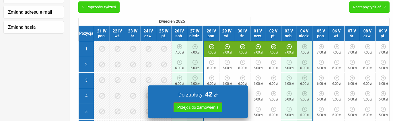 - Podczas zaznaczenia terminów widzisz sumę do zapłaty – płacisz tylko za wybrane dni.